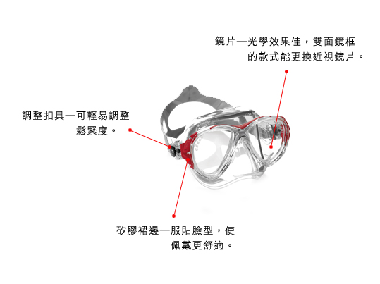 提高矽胶柔软度,使面镜的裙边变的更柔软让使用者带的更舒适,同时也改善面镜的贴合度,与肌肤的触感变得更好也不易进水。不过要记得,挑选面镜时基本的脸型合适度还是不可以相差太多。