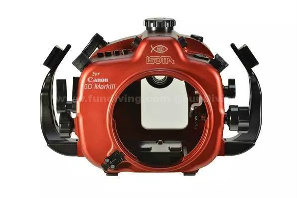 意大利设计和制造,Isotta生产各类主流数码单反和数码相机品牌的高端铝质防水壳。AS5DMarkIII的外壳全部由Isotta标志性的红色阳极氧化铝制造,耐腐蚀、覆盖热涂层。工作深度最大可达到100米,外壳采用Isotta的单手旋钮开关,是目前所有DSLR防水壳中唯一采用单锁扣锁闭系统的。在所有移动和可拆卸部件上均采用双密封圈设计,确保最佳密封性能,防止因为颗粒或几缕发丝导致的意外漏水。每台Isotta防水壳上都标配LED湿度传感器。