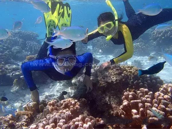 2、潜水服或防晒服:保护身上皮肤和避免长时间浮潜时日晒过度;