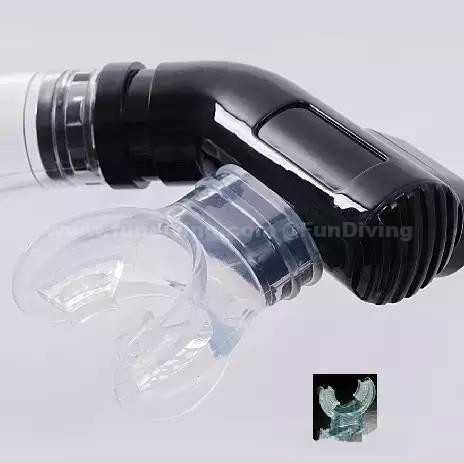 2、干式管和湿式管(包含半干式管):干式管可确保下潜时不会有水灌进管中,而湿式管则保证不了。闭气下潜后上浮到水面时,湿式管需要鼓足气一下将灌满管中的水从进气管头和排水阀处吹走,然后才吸气呼吸。