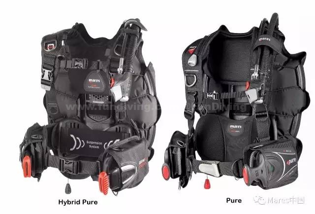 Pure作为Mares新的BCD, 集工艺、可靠和优越性于一体。Pure源于Hybrid Pure,继承了它的高品质:维持了原来的重量,同样平衡的气囊设计。改进了一些基本功能,整体更加简化,稳定的浮力提供提升至18KG。(170N,Hybrid Pure为150N)