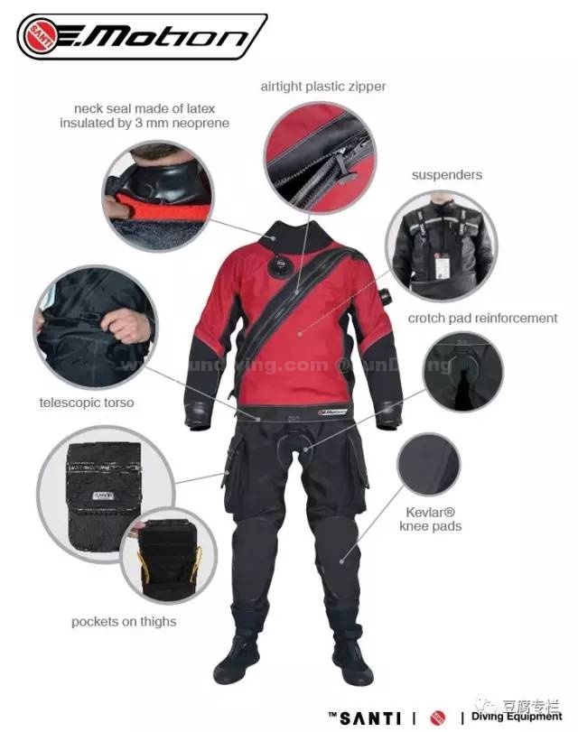 按照对“干衣”这个词汇的了解,基本可以判断朋友同事和我的熟悉程度。本公众号的读者想必都知道干衣(干式潜水衣)的基本原理——反正就是衣服里面不会进水呗!也分得清trilaminate(三层压合材料)和氯丁橡胶的材质。氯丁橡胶据说比较便宜,并且自带保温功能,但是会随着水压加大被压薄,保温性能逐渐降低,浮力也会变化;我某任毒舌buddy还曾经说,氯丁橡胶干衣穿上去掉半条命,剩下半条用来把它脱掉。