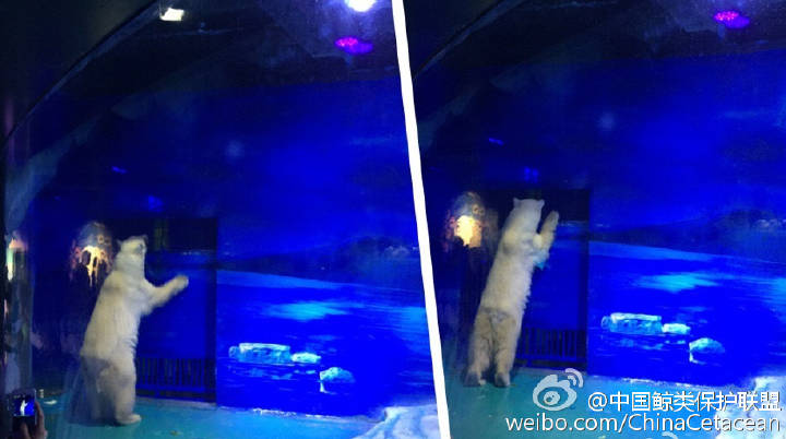 北极熊在恶劣的圈养环境里焦躁不安,心理和行为受到极大限制。狭小的笼舍里毫无丰容,这种在野外拥有广阔领地的动物只得不断在笼舍里刻板,眼巴巴望着那道隔断自由的铁门。