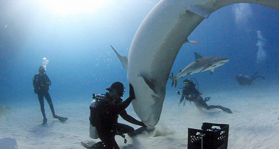众所周知,鲨鱼食肉成性,凶猛异常,令人避之唯恐不及。近日,美国男子伊莱马丁内斯(Eli Martinez)却丝毫不畏惧,让重达一吨的虎鲨在他的手掌上表演了180度旋体,并称自己是有史以来第一个与鲨鱼共舞的人。
