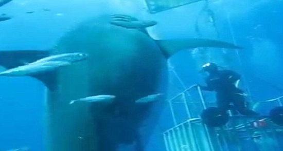 研究人员毛利西奥奥约斯帕迪利亚在“脸谱”上晒出了这段与大白鲨亲密接触的视频,收获点击量近800万。视频中,大白鲨始终在装有潜水员的铁笼子旁边徘徊。当它缓缓靠近之时,毛利西奥终于得以拍摄到它巨大而尖利的牙齿。毛利西奥表示,一条如此年长的巨型白鲨的存在恰恰证明人类采取的保护措施奏效了。