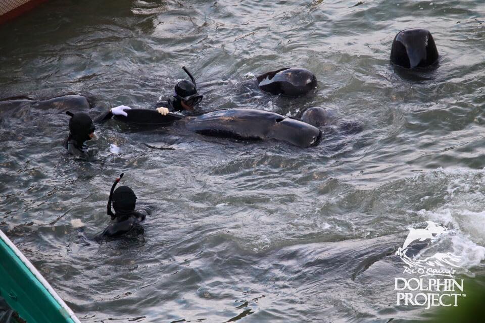 美国一个致力于保护鲸豚的世界慈善机构“Ric O'Barry's Dolphin Project”,在facebook发布一张张血淋淋又令人心碎的照片。他们表示,2015年11月20日,一群日本人正在大量屠杀领航鲸。有几个画面中,他们集体抓著鱼鰭硬拖上船,血染海洋,可见过程粗暴残忍,估计至少40只领航鲸受害。让网友看了愤怒吶喊“不可原谅!”“难过到说不出话,为这些灵魂祈祷。”