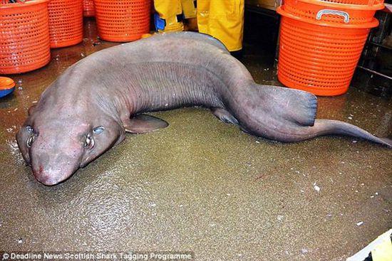 据英国《每日邮报》11月30日报道,近日苏格兰海域现怪鲨,身长约3公尺,重达60公斤,体貌极为怪异,浑身褶皱,柔若无骨,颠覆人们对鲨鱼的认知。
