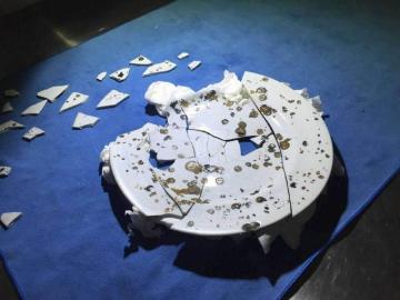 这次发现最直接的证据来源于一只被打捞上来的瓷盘,瓷盘碎片经过拼接后,复原出来后可以清晰地看到篆书“致远”两个字。