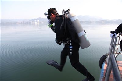 10月15日,太平湖考古队潜水员正式下水探摸。