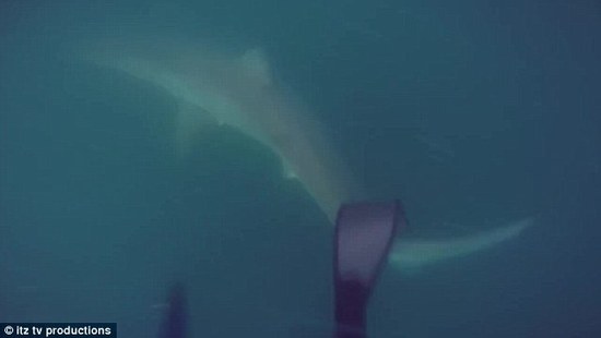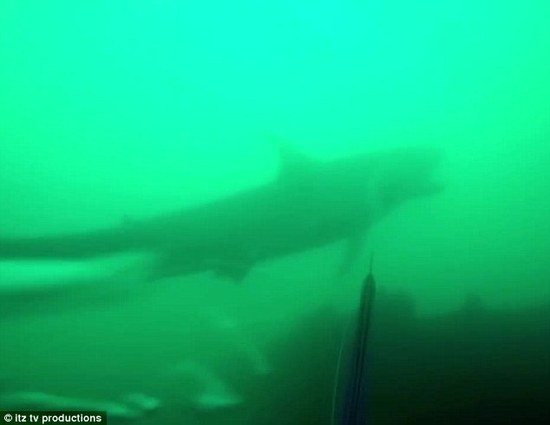 鲨鱼先是加速离开,补料,却又突然掉头朝男子袭来,这名男子不得不再次刺出捕鱼叉,鲨鱼终于游走了。
