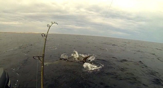然而,就在他收线的时候,意想不到的事情发生了,5只青铜色鲨鱼迅速游过去,活活吃掉了还在鱼钩上的旗鱼。布伦德尔只能无奈地看着自己的成果成为鲨鱼口中的美味。