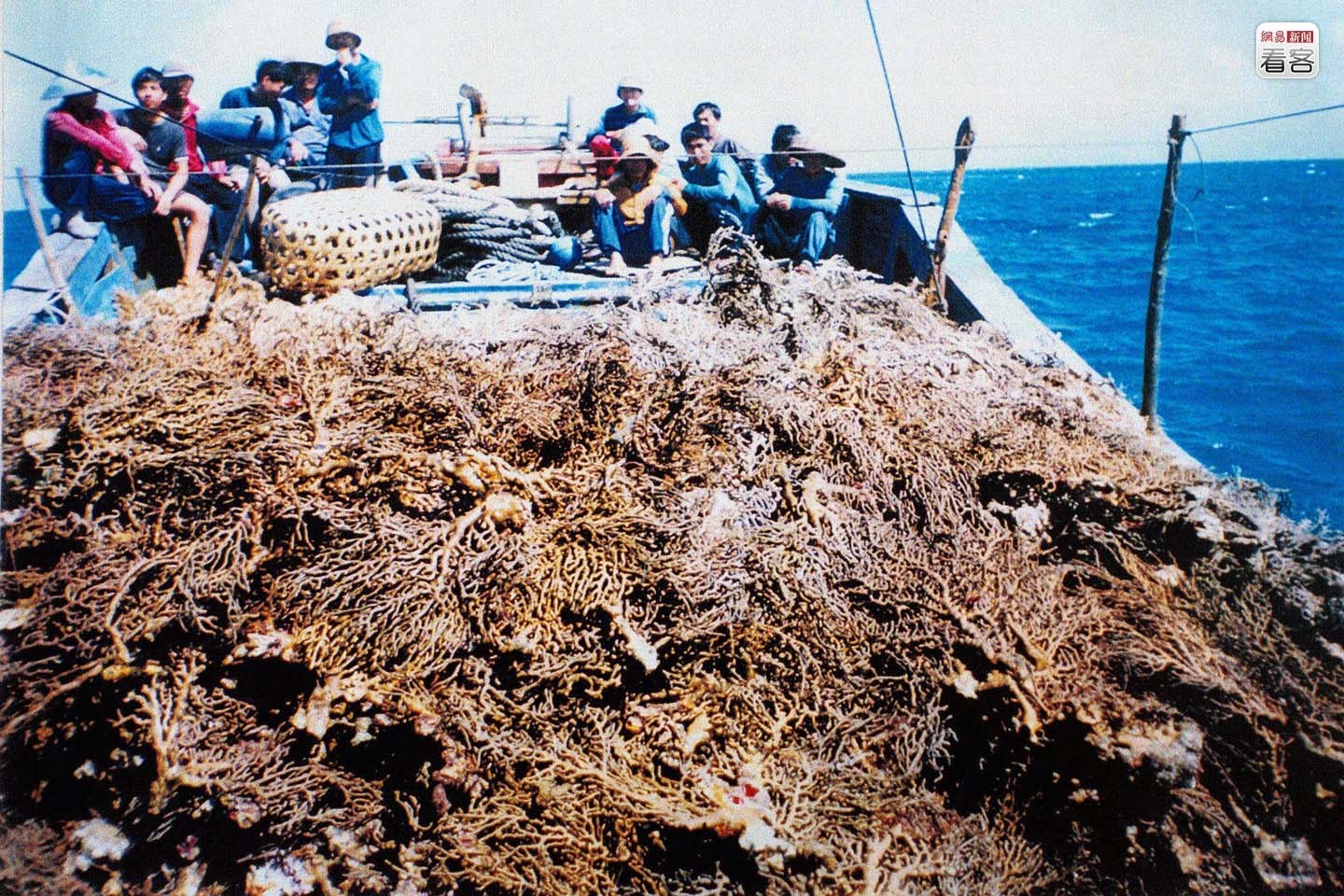 在南海岛礁之间,中国渔民一直大肆捕捞各种珊瑚树。图为2000年1月6日,菲律宾海军拍摄的打捞珊瑚的中国渔船。菲律宾在扣下渔船之后向中国发出照会要求中方严惩渔民。ELECTRONIC IMAGE/AFP PHOTO