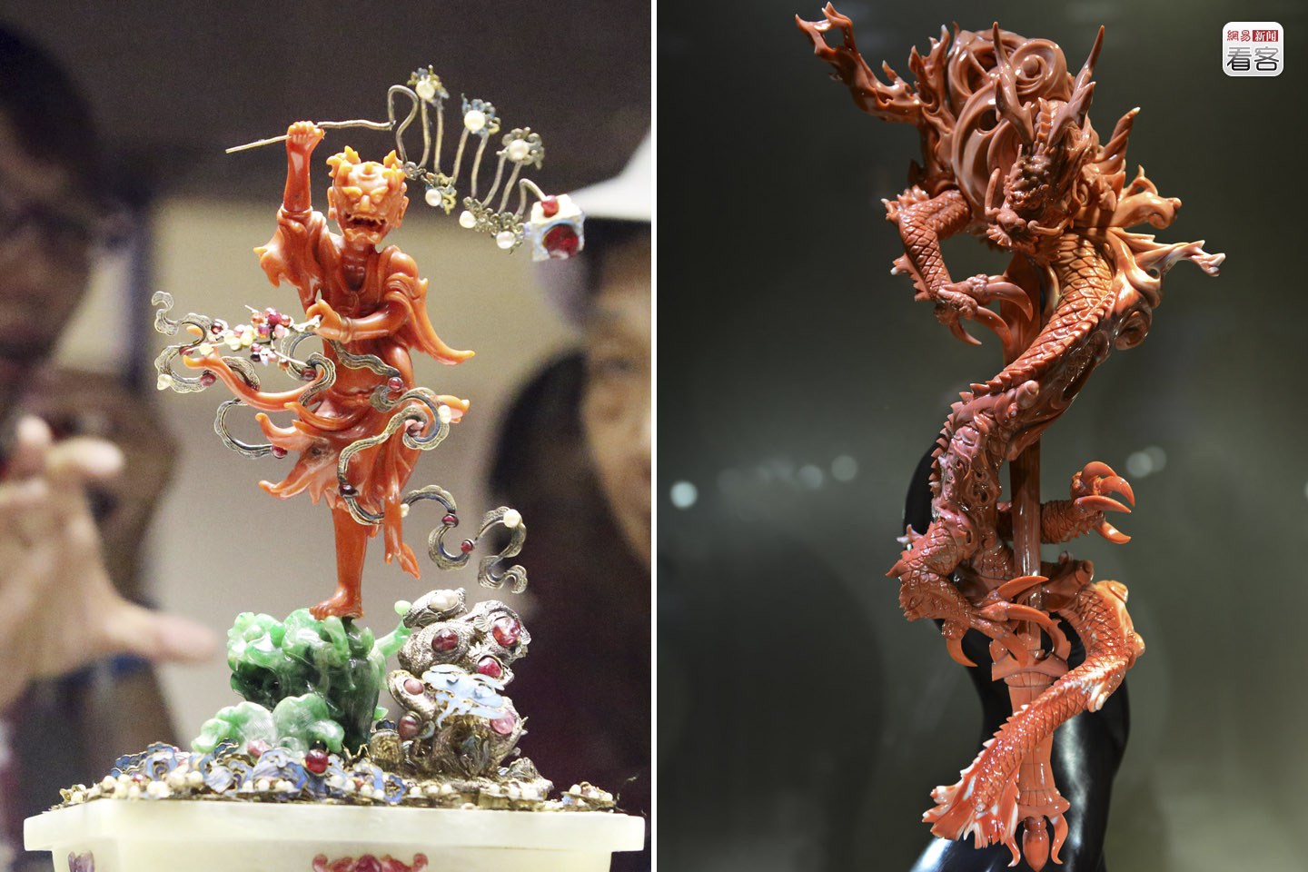 在亚洲地区,红珊瑚是非常重要的宝石珊瑚。在古代中国,红珊瑚是皇家贡品,在印度和西藏,佛教徒视红色珊瑚为如来佛化身,他们用珊瑚来做佛珠,或装饰神像。中医认为,红珊瑚可治病入药。左图台北故宫的珍贵藏品“清珊瑚魁星点斗盆景”。右图为2014年02月20日,台湾省台东县,红珊瑚珠宝展览。