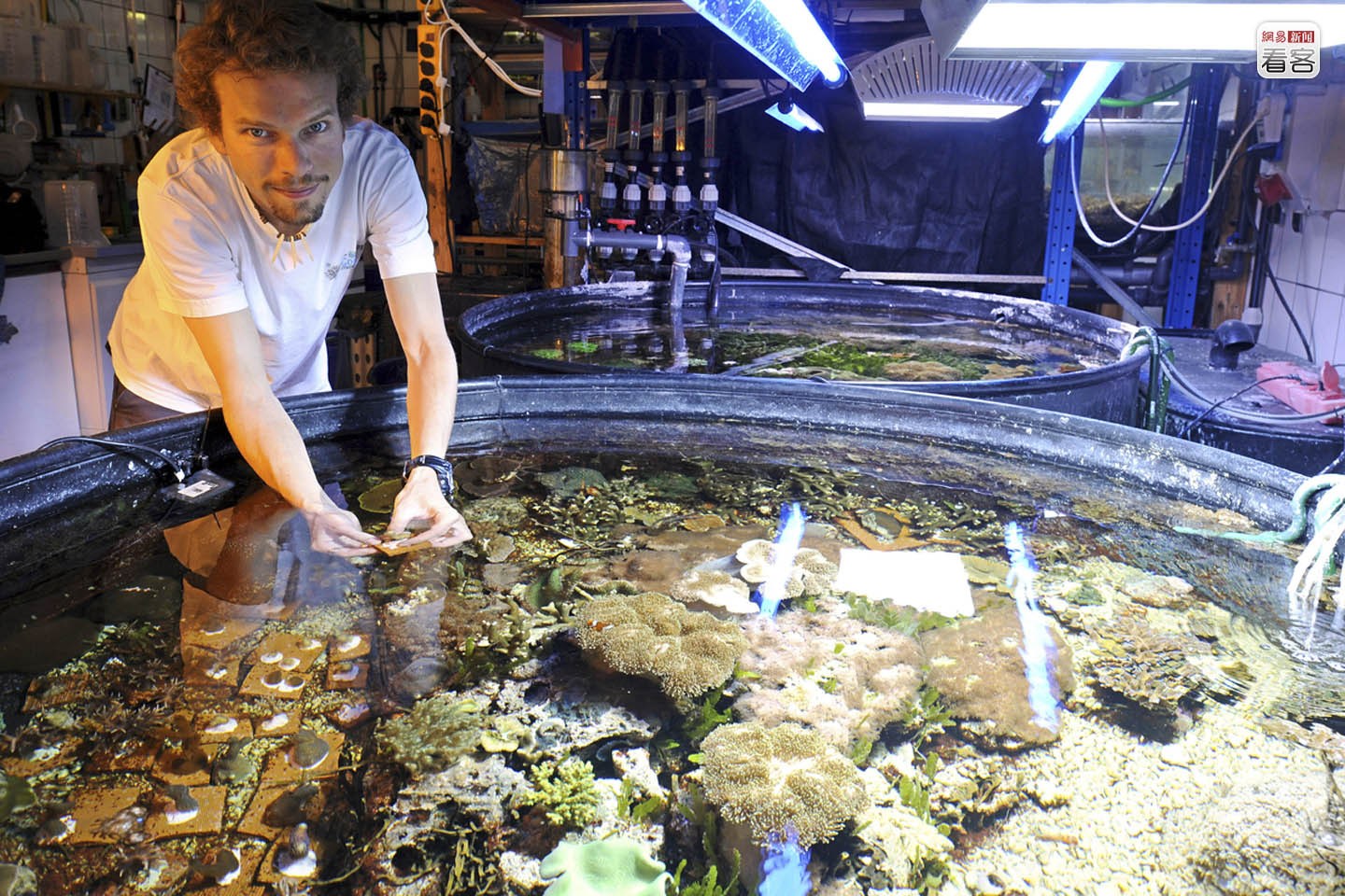 为了保护珊瑚,世界各国的生物学家都在研究其生成和繁衍的机制。图为2010年6月16日,德国科学家在实验室里培育珊瑚。IC