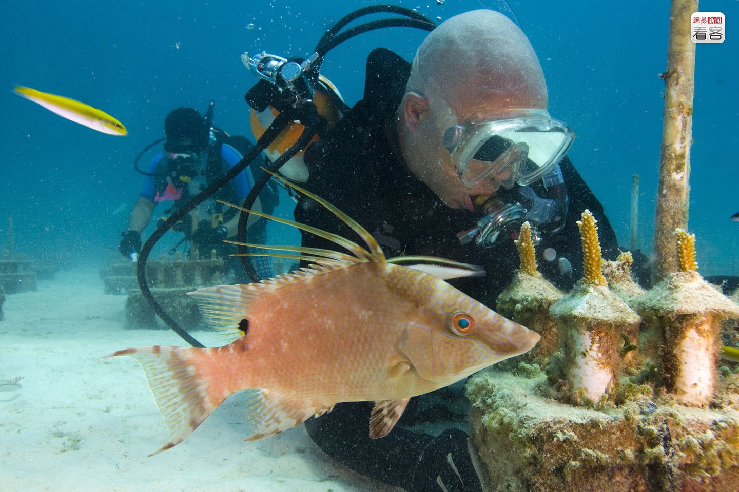 在现有的科学条件下,比较科学的珊瑚礁种植方法是制造人工沉礁和培育结合。图为2010年8月7日,美国弗罗里达州海域,潜水员们正在“栽种”濒危的鹿角珊瑚,以促进珊瑚礁的形成。Carey Wagner/Sun Sentinel/POLARIS