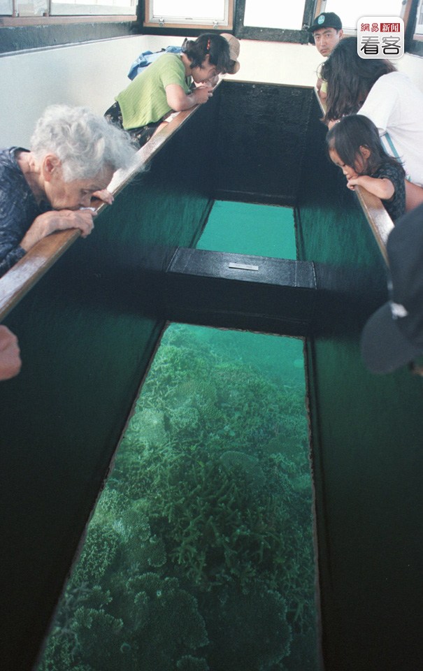 常年来,冲绳的珊瑚都引来大批国外游客观赏。图为1996年9月7日,美国游客正在观赏船内欣赏珊瑚的美景。AP Photo/Koji Sasahara