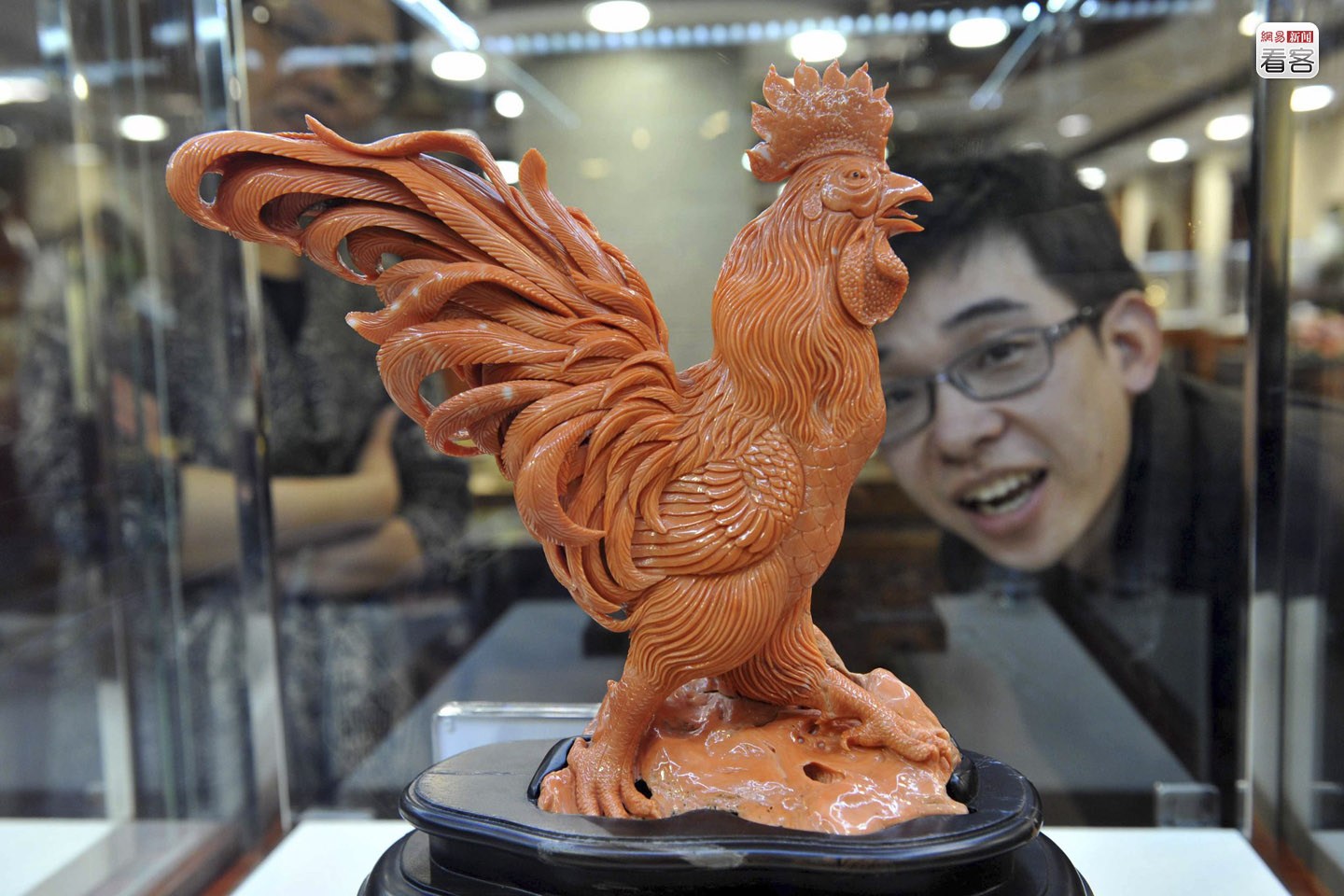与渔民舍命捕捞相对应的是红珊瑚类的奢侈品在中国的热销。2012年2月26日, 北京某商场展出重达2千克的亚洲最大的珊瑚公鸡摆件。
