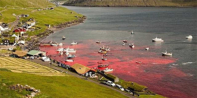 近日,丹麦的海外自治领法罗群岛举行一年一度的集体捕鲸活动,当地居民将约250头鲸鱼赶到岸边,并用刀和鱼叉杀死他们,由于被杀死的鲸鱼数量众多,鲜血已经将整片海域染成红色,场面十分骇人。该地的捕鲸活动与日本的捕鲸及加拿大的捕猎海豹活动齐名,一直争议不断。