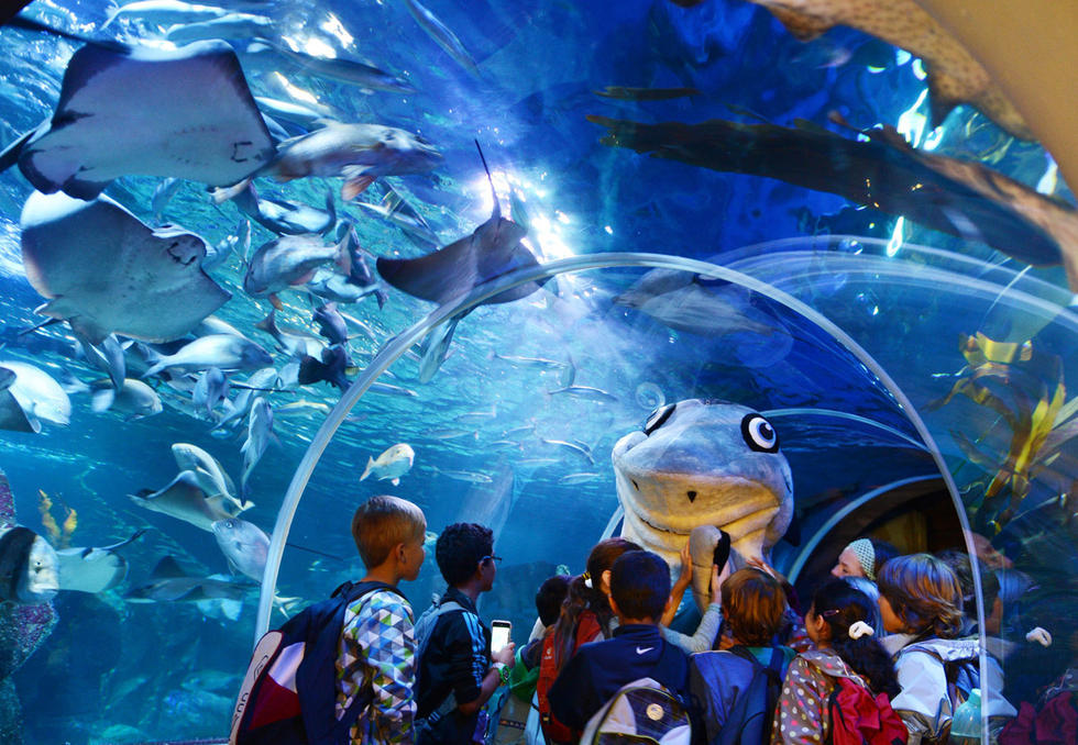 在这栋水族馆中间,有透明的升降电梯,游人可以近距离接触海洋生物,建造这栋别致的水族馆花费了1280万欧元(约合人民币8694万元)。