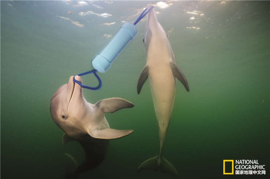 海豚是解决问题的能手。佛罗里达群岛附近的这两只宽吻海豚很快就明白,要打开这截里面装着鱼的PVC管的唯一办法就是互相合作。