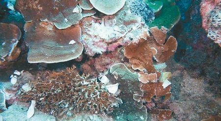 垦丁海域不时见到被潜水客踩踏或碰撞断裂的珊瑚。