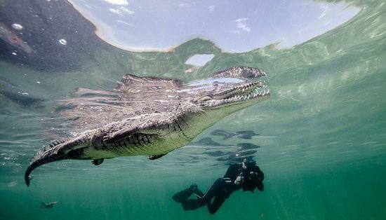 据英国《每日邮报》6月25日报道,喜欢冒险的墨西哥水下摄影师里卡多卡斯蒂洛(Ricardo Castillo)日前在古巴女王花园海洋公园度假,原本希望能够抓拍到鲨鱼照片。但他却遭遇了另一种水下掠食者――咸水鳄。