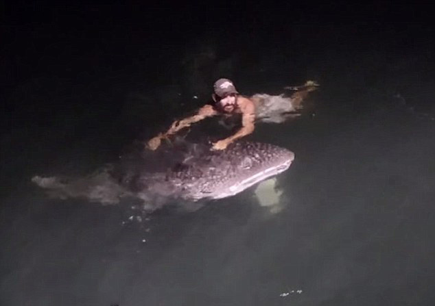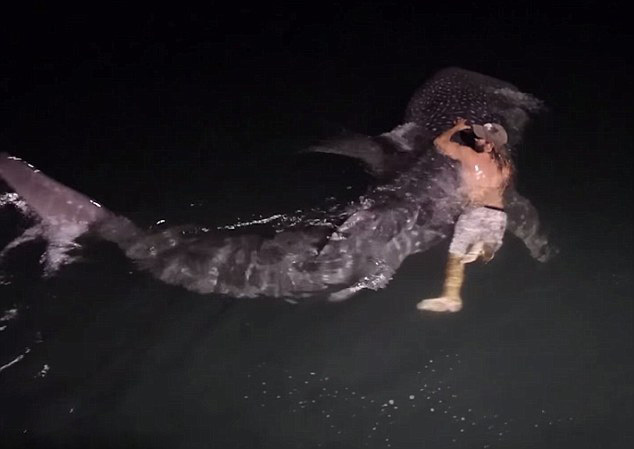 据悉,该鲨鱼属于鲸鲨,最长可达20米,在当地十分少见。