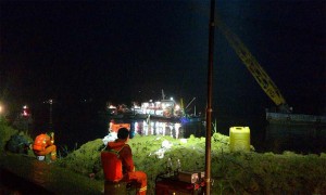 由于入夜后水下照明问题又会进一步加在了救援工作的难度,尽管有水下照明设备,但由于探照范围有限,根本不能通过水下照明来搜索生还者。更多的只能通过摸索和敲击来地毯式地进行搜寻。