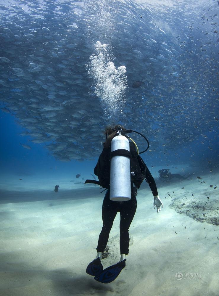这组震撼的图片记录了一名潜水者被龙卷风一般的鱼群包围的震撼场面。当天,来自美国加州圣迭哥的Tori Hester正在墨西哥的卡布帕摩珊瑚礁区潜水,忽然,一个巨大的鱼群朝她游了过来。Tori的丈夫Jeff当时在现场,用水下相机捕捉下了这惊人的一幕。