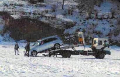 另一名目击者详细描述了拖车的过程:潜水员把钩子挂在了车头,钢丝绳另一端则拴在与拖车连在一起的另一辆越野车的绞盘上;两旁的牵引绳分别由几名年轻男子拽着,主要是控制车的方向。在车尾部和冰面之间,有人塞了一些木棍,先出水的是车尾部。此后是车头,然后整辆车平移到安全的冰面上,再拖到拖车上。整个过程用了4个多小时。