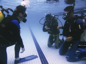 “呼吸放慢一点,腿伸直,腰下塌,注意游动的频率。”11月8日,电子科技大学清水河校区游泳馆内,珊珊一身紧身潜水装,身背氧气瓶、头戴护目镜和呼吸器潜入水中,埋头在泳池里很快游了一个来回,浮出水面后,教练谢松对她竖起大拇指。这是一堂潜水训练课,今年2月刚刚开始学习潜水的珊珊已经考到两个潜水证书。