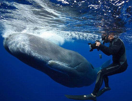 抹香鲸习性与蓝鲸截然不同,它是非常厉害的,猎物一旦被它咬住就难以脱身.它最喜欢吃的食物是深海大王乌贼,因此“练就”了一身潜水的好功夫。