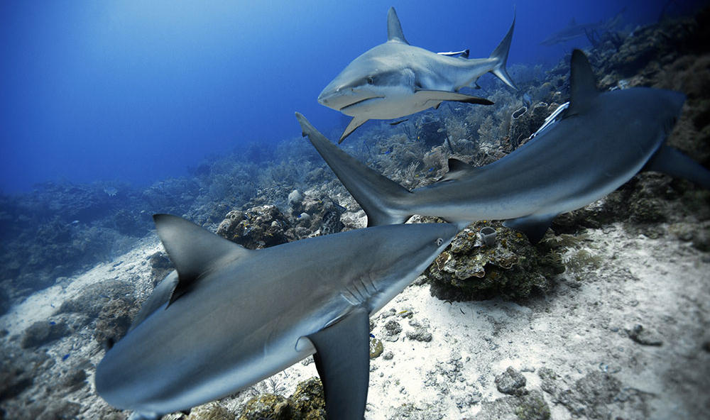 在加勒比海潜水时,夫妇俩偶遇了加勒比礁鲨。遇到鲨鱼时,最重要的是读懂它们的肢体语言。如果鲨鱼始终缓慢自然地游动,就证明它们未觉得受到威胁。