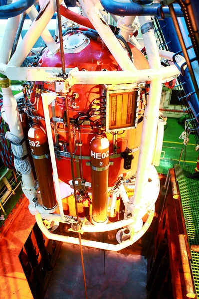 美国1957年提出“饱和潜水”,就是创造出一种环境和条件,使潜水员体内各组织体液中所溶解的惰性气体达到完全饱和的程度,潜水员可以在高压下停留几十天,待作业完成后,一次减压,返回正常生活。这就需要建造一个生活舱,给舱里加压形成高压环境,潜水员在舱里呼吸的气体是氦气和氧气的混合气体。在不同的深度和高压环境下,混合气体的配比和加压时间都不同。1981年,美国完成了第一次实验,3名潜水员在686米的海底,生活工作了7个昼夜。