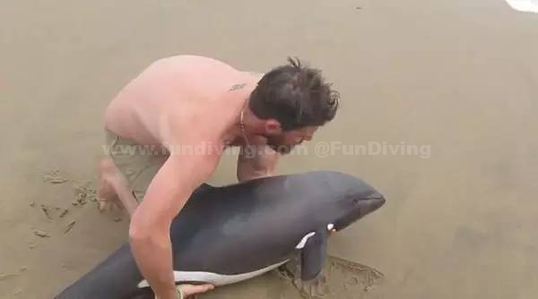 【环球网综合报道】据英国《每日邮报》6月10日报道,纳米比亚一位名叫诺德·德雷尔(NaudeDreyer)的皮划艇教练,与妻子在海滩边发现了一只搁浅的海豚,将它放回大海,从而拯救了海豚的生命。