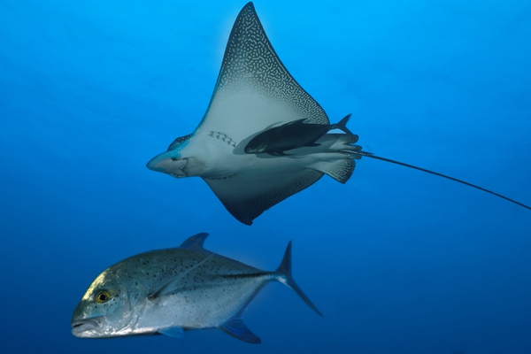加拉帕戈斯群岛船宿,是每个潜水员都向往的朝圣地,这里每天都有盛大的狂欢游行,每天都在上演的锤头鲨风暴是重头戏,巨大游行队伍中,当然不能少了像加拉帕戈斯鲨、海狮、鹰鳐、海龟、海豚、鲸鲨这样的大家伙。
