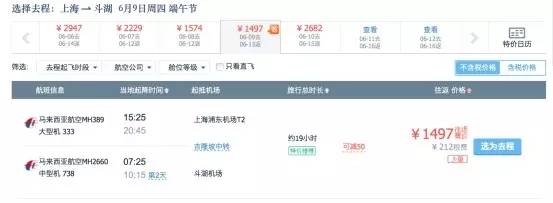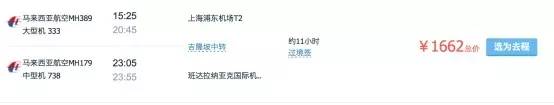 虽然是有中转,但是全程时间也不是特别长,可以接受,重点是这个1200不到的价格往返马来西亚,也属白菜价。