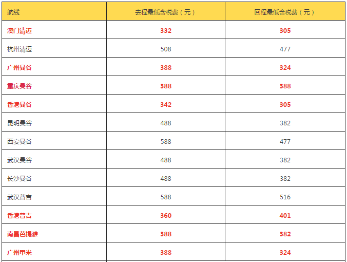 ▲五一香港直飞清迈,往返含税的实时报价