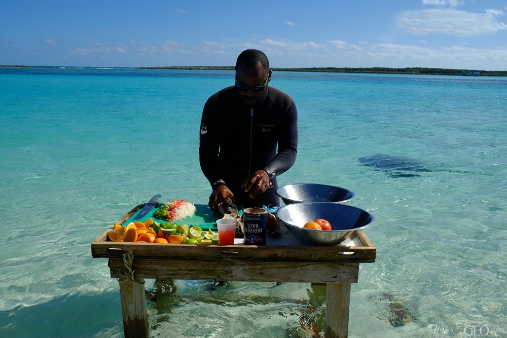 接下来,我就从拿骚去了一个名叫Bimini的小岛,在那里有一个世界闻名的科研机构——鲨鱼研究所,我在那里住了四天,进行饲喂鲨鱼的潜水并采访在那里工作的海洋生物学家。