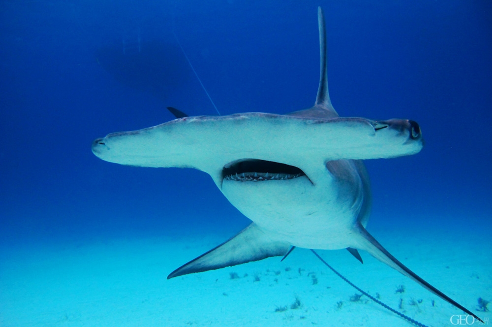 在水下与大锤头鲨Great Hammerhead的亲密接触。