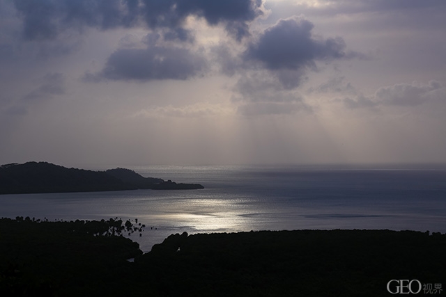 在环岛路上偶遇一位当地人Justin,很热情地邀请我去他家参观,带我沿着他家后一条山间小路去看了一条隐秘的瀑布。波纳佩是世界上降水量最大的地方之一,淡水丰富,瀑布众多。在去瀑布的路上经过一户人家,房舍是开放式的,没有门窗,家里没有人,Justin说村民们家里的东西都是可以随便吃的,说完便翻出了面包果、香蕉,甚至找到了锅里刚煮好的牛尾,我们享用一番再接着上路。波纳佩岛由于很孤立,岛上生态与大陆迥然不同,没有任何可以伤害人的虫蛇鸟兽之类,岛民又非常淳朴,犯罪率低,所以这种开放式的房舍随处可见。
