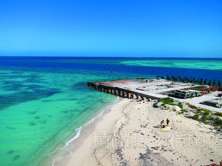 干龟岛位于佛罗里达岛屿链的最南端,距离基韦斯特有68英里(109公里),由7座珊瑚礁岛(Garden、Loggerhead、Bush、Long、East、Hospital和Middle)组成。白色的沙滩,蓝色的海水,岸上还有座砖红色的宏伟要塞。没有手机信号,没有网络,甚至没有淡水,干龟岛就像一个遗失的天堂,隔世而绝美。