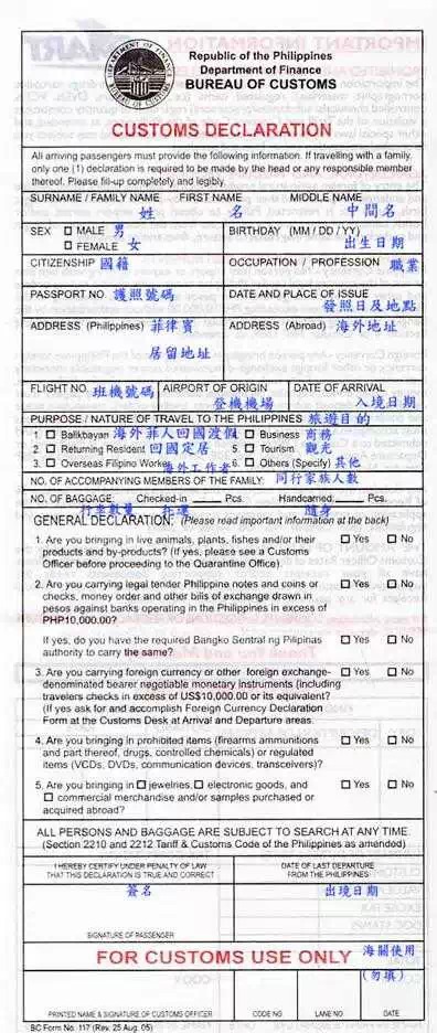 海关申报卡:
