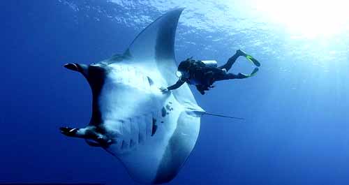 巨大的魔鬼鱼在经认证的海底水肺潜水员和浮潜员面前旋转跳跃,献上一场精彩的演出,如芭蕾一般优美的令人难忘。魔鬼鱼经常游到距潜水者很近的地方,总是能在最后一秒避免接触到潜水者。近距离接触这些魔鬼鱼,真的是令人一生难忘的体验。