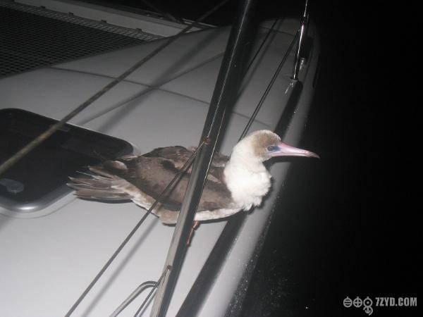 我们船上今天迎来了第一个旅客,一只海鸟,它在黑夜里悄悄地落在了船的弦帮上。