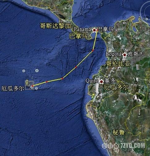 这是非常著名的一个群岛(Galapagos),也是在太平洋上离巴拿马最近的一个岛屿,但却是厄瓜多尔所有,岛上风光如画,是帆船爱好者的天堂,上面植物保护很好,更值得关注的是千万年前火山喷发后留下千奇百怪的石头。由于晚上到达,我们无法靠岸,只有在锚地外停留一晚,第二再找岛内避风港湾停靠休整船只。