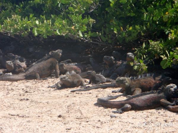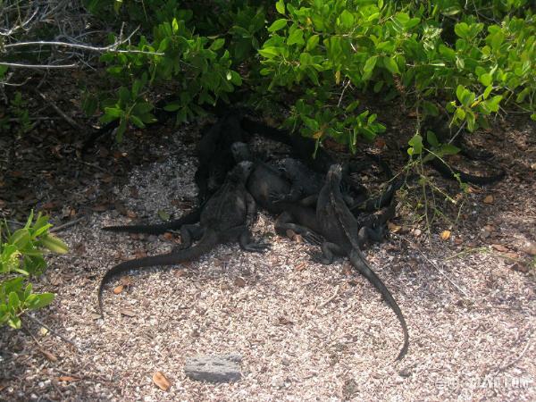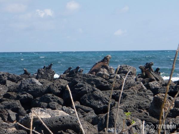在船上的时候我就以现沙滩上,有一行动物的脚印。让我兴奋不已,我的老朋友,我的大蜥蜴.....我来了。岛上的蜥蜴有两种,海蜥蜴个大,是两栖动物,金蜥蜴个小灵巧,生活在树林里。登上Santa Cruz岛,看到的第一种动物是海蜥蜴。一群黑漆漆的海蜥蜴,趴在地上,有人靠近,也懒得去躲的样子,不断打着喷嚏。