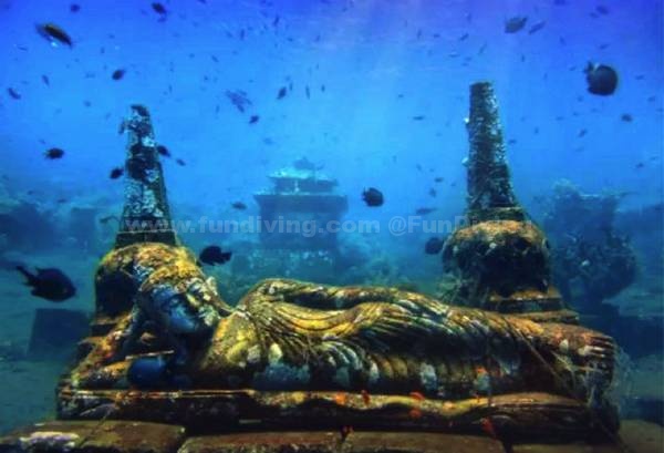 可是当你呆久了,也许会慢慢安静下来,忘了自己在潜水,好像真的是去礼佛朝圣一样。而大自然也用自己的力量,赋予了这些佛像新的生命。