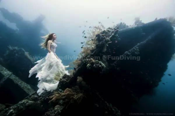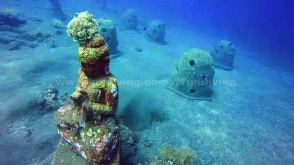 再说个离咱们近的。在婚纱摄影专用取景地,印尼巴厘岛东北部的地方有个叫做Tulamben的著名潜水点,其中最吸引人的水下景色,当属水下佛像和美国自由号沉船。