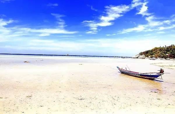 南园岛位于泰国海湾,包括三个小岛,由一片洁白的人字形沙滩连接而成,当海水落潮时,三座小岛便连成一体,走在狭长的沙滩上,左边是海,右边也是海。